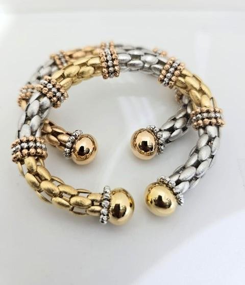 Elevate your style with our stylish and sophisticated 3-tone bangle, a true testament to timeless elegance and refined taste. Crafted with precision and attention to detail making it a timeless and luxurious pieces.